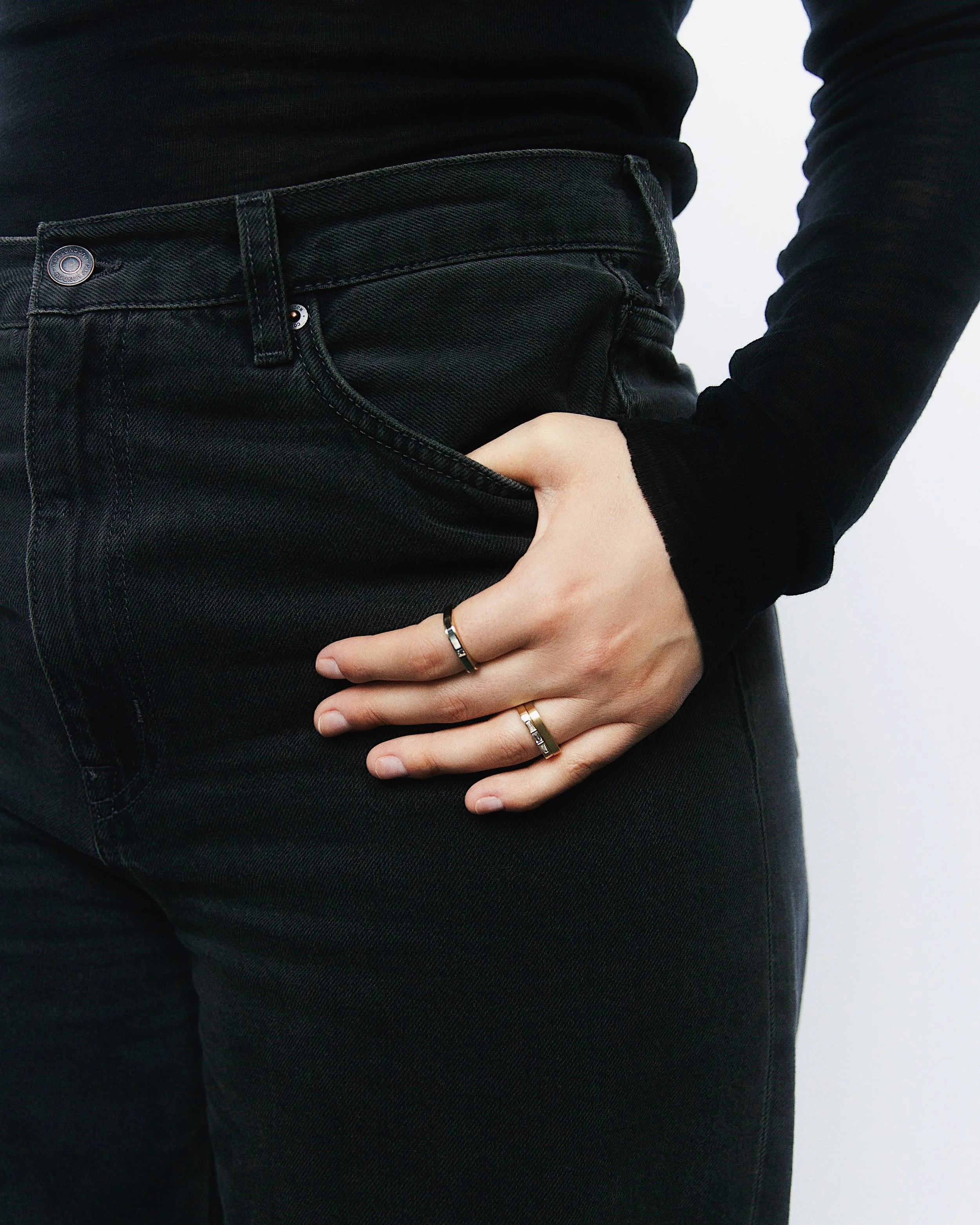 Influenced by midcentury modernism and the design ideologies of the Bauhaus, the Kvadrat Collection is an intentionally designed collection of fine jewelry pieces that emphasizes both form & function, and allows the wearer to build their own personal collection of pieces and wear them interchangeably. Each piece within the collection is designed to be worn individually or in combination with each other to create the ultimate modular set.